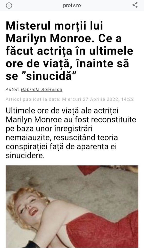 În dimineața morții sale, Marilyn a sunat-o pe actrița Jeanne Carmen, care mai apoi a declarat pentru Vanity Fair că diva era supărată.