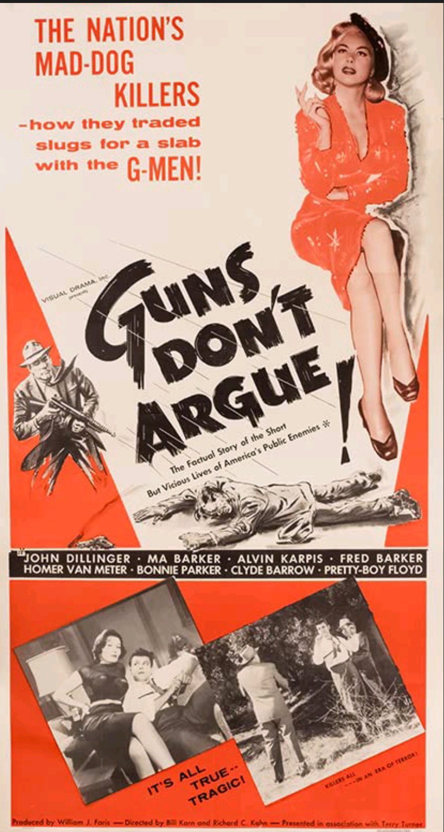 Jeanne Carmen is featured prominently on the poster campaign for this classic true crime anthology featuring the true stories of John Dillinger, Pretty Boy Floyd, Bonnie & Clyde and Ma Barker
